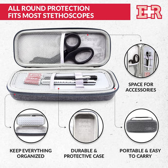 Spacious design accommodates most stethoscope models and accessories