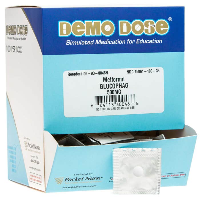 Simulated version of Metformin (Glucophage) 500 mg used in clinical education