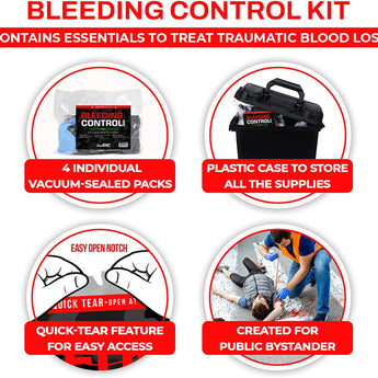Each kit is designed to be easily accessible and portable, ensuring that anyone can act quickly in the event of an emergency. The vacuum-sealed packaging keeps the contents sterile and ready for immediate use. Whether you’re at home, on the job site, or in a high-risk environment, this bleeding control kit ensures that you're equipped to handle traumatic injuries effectively and safely.